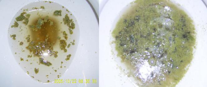두 번째 화장실에 갔을 때는 작은 초록색 덩어리들이 많이 나왔음. ;갈색 덩어리